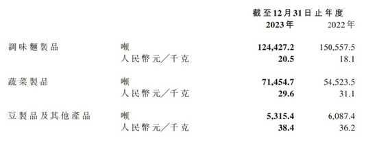 从销量上看,2023年卫龙美味蔬菜制品卖出了7.14万吨,较2022年的5.45万吨增加1.69万吨,销售单价虽然从2022年的31.1元/千克跌至29.6元/千克,但显著高于辣条的20.5元/千克的单价。